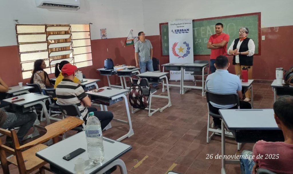 El Ente Regulador de Servicios Sanitarios (ERSSAN) llevó a cabo una jornada de capacitación dirigida a los prestadores del servicio de agua potable y alcantarillado sanitario del distrito de Tacuara, en el departamento de Ñeembucú. La actividad tuvo como objetivo fortalecer los conocimientos técnicos y normativos para mejorar la calidad del servicio brindado a la comunidad.