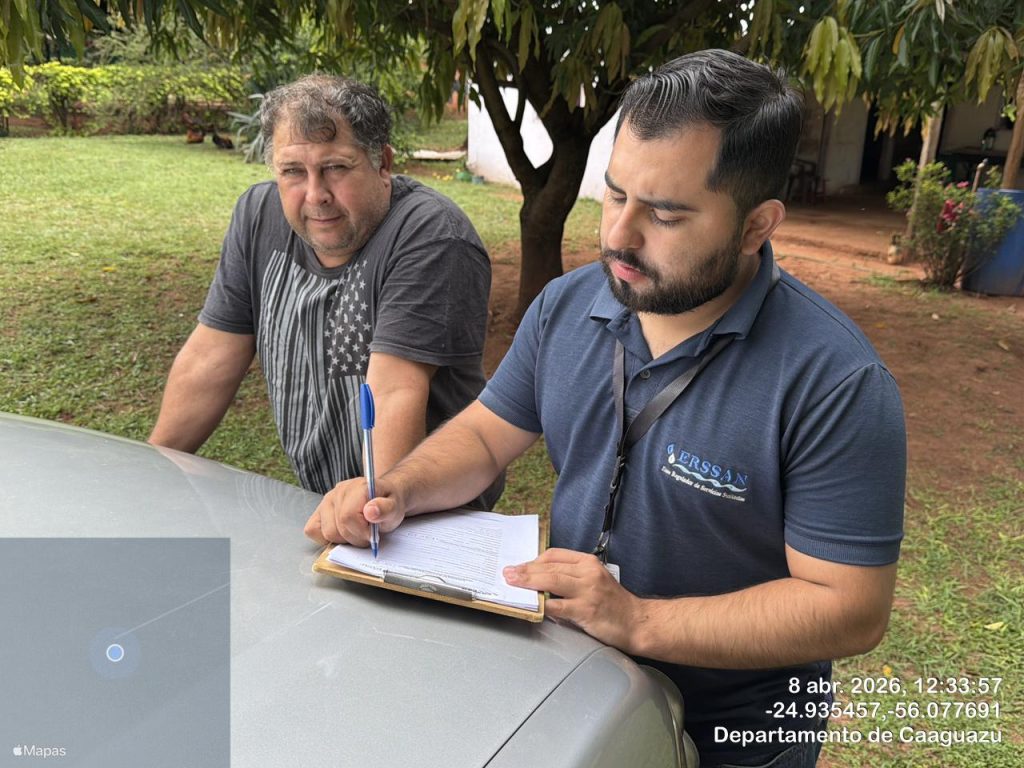Funcionarios del Ente Regulador de Servicios Sanitarios (ERSSAN) avanzan con las verificaciones en el departamento de Caaguazú, donde llevan adelante controles de la calidad del servicio de agua potable en el marco del Plan Anual de Supervisión (PAS 2026), con el objetivo de garantizar que la prestación se brinde en condiciones adecuadas para los usuarios.