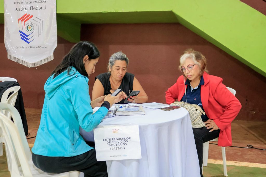 ERSSAN continúa acompañando la jornada «Ciudad Mujer Móvil», en el local del Polideportivo Municipal de la ciudad Raúl Arsenio Oviedo, departamento de Caaguazú, donde los funcionarios brindan asesoramientos e información a los prestadores, usuarios y terceros comprendidos del sector de agua potable de dicho municipio.