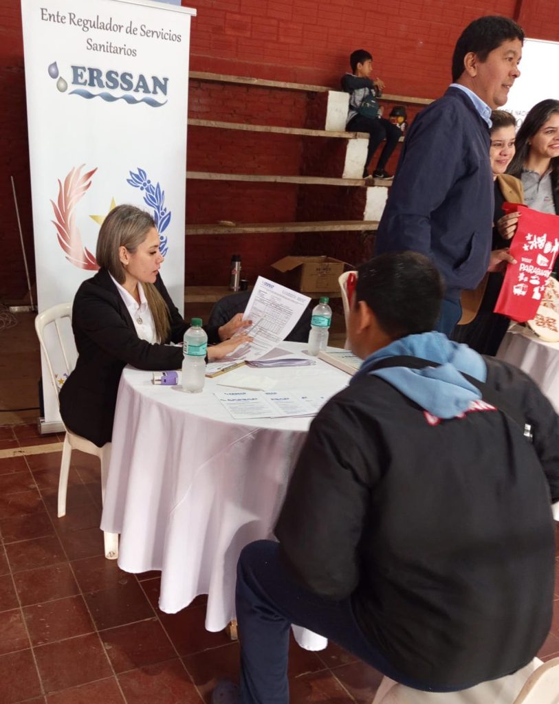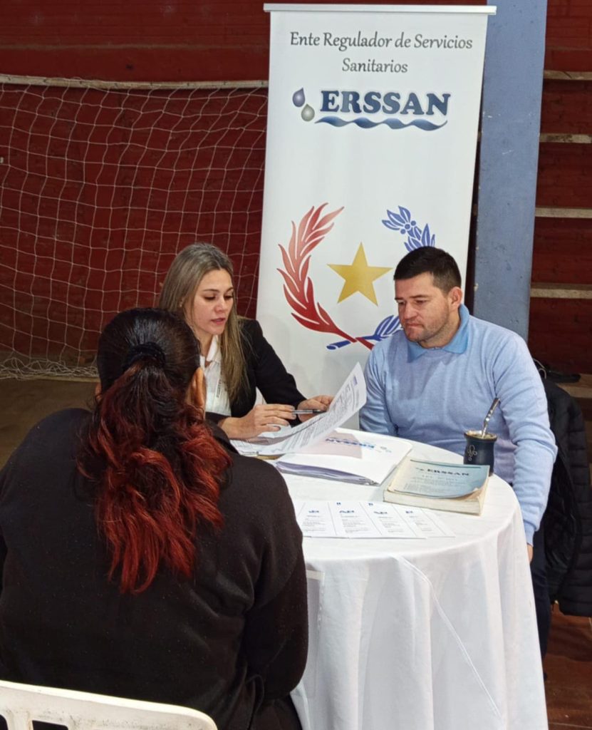 Funcionarios del ERSSAN acompañan la jornada del Programa Ciudad Mujer Móvil, que se realizada en el Polideportivo Municipal de la ciudad de Dr. Bottrell, a fin de dar asesoramiento y entrega de los resultados de análisis de agua potable realizados a los prestadores de dicho municipio.
