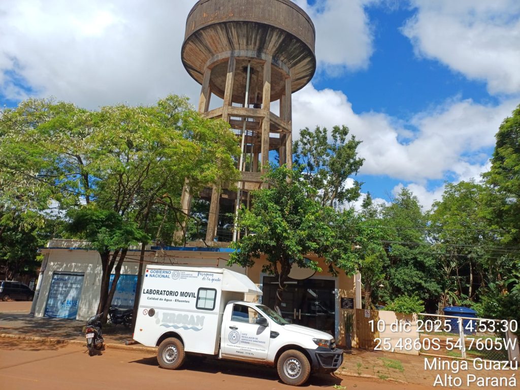 Los técnicos del ERSSAN, en esta oportunidad verifican los sistemas de agua potable en los distritos de Juan Leon Mallorquin, Juan E. O’leary, Minga Guazú, San Cristóbal, Tavapy e Yguazú